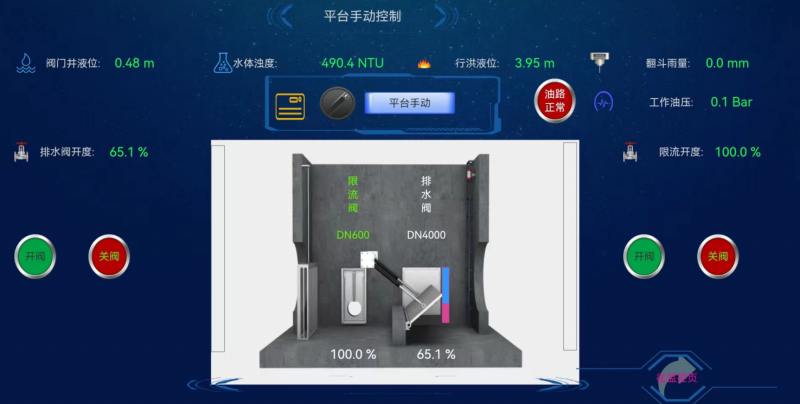 (1)通过可视化地理信息平台来星现雨洪调蓄设施的整体分布情况,利用工艺仿真模拟技术,实况模拟还原灰色设施内部运转情况;